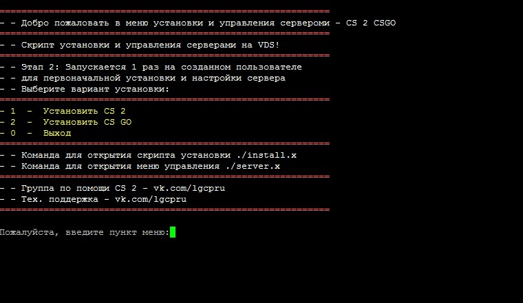 Многофункциональный скрипт установки и управления игровыми серверами CS 2 на VDS!