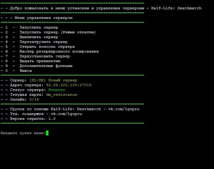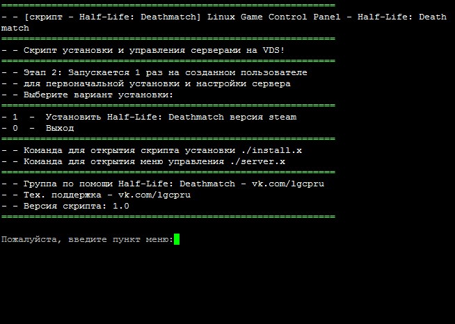 Многофункциональный скрипт установки и управления игровыми серверами HL: Deathmatch на VDS!
