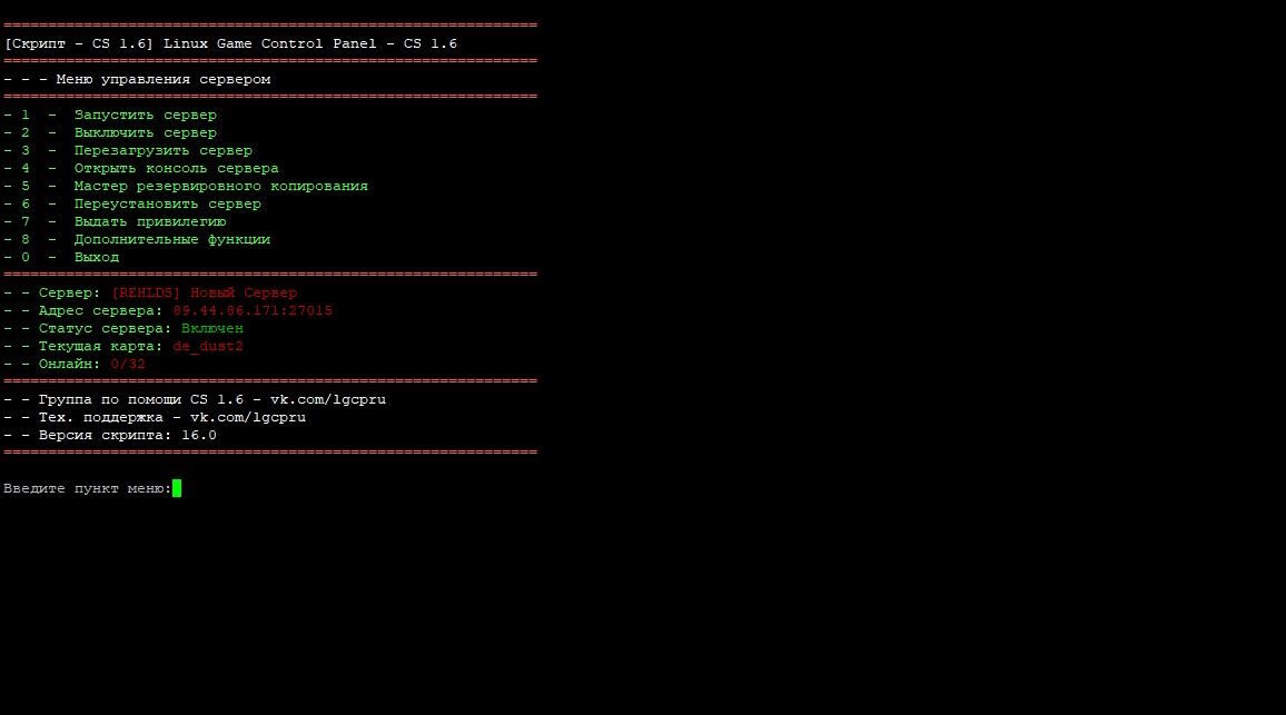 Многофункциональный скрипт установки и управления игровыми серверами CS 1.6 на VDS!