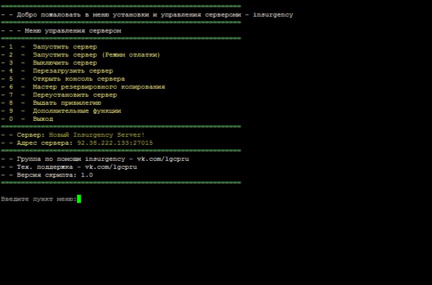 Многофункциональный скрипт установки и управления игровыми серверами insurgency на VDS!
