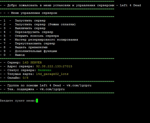 Многофункциональный скрипт установки и управления игровыми серверами Left 4 Dead на VDS!