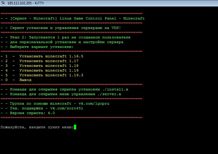 - 7. Установка завершена, теперь для управления сервера всегда заходим в Putty под данными вашего пользователя и вводим команду ./server.x