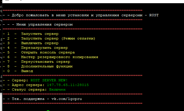 Многофункциональный скрипт установки и управления игровыми серверами Rust Experimental на VDS!